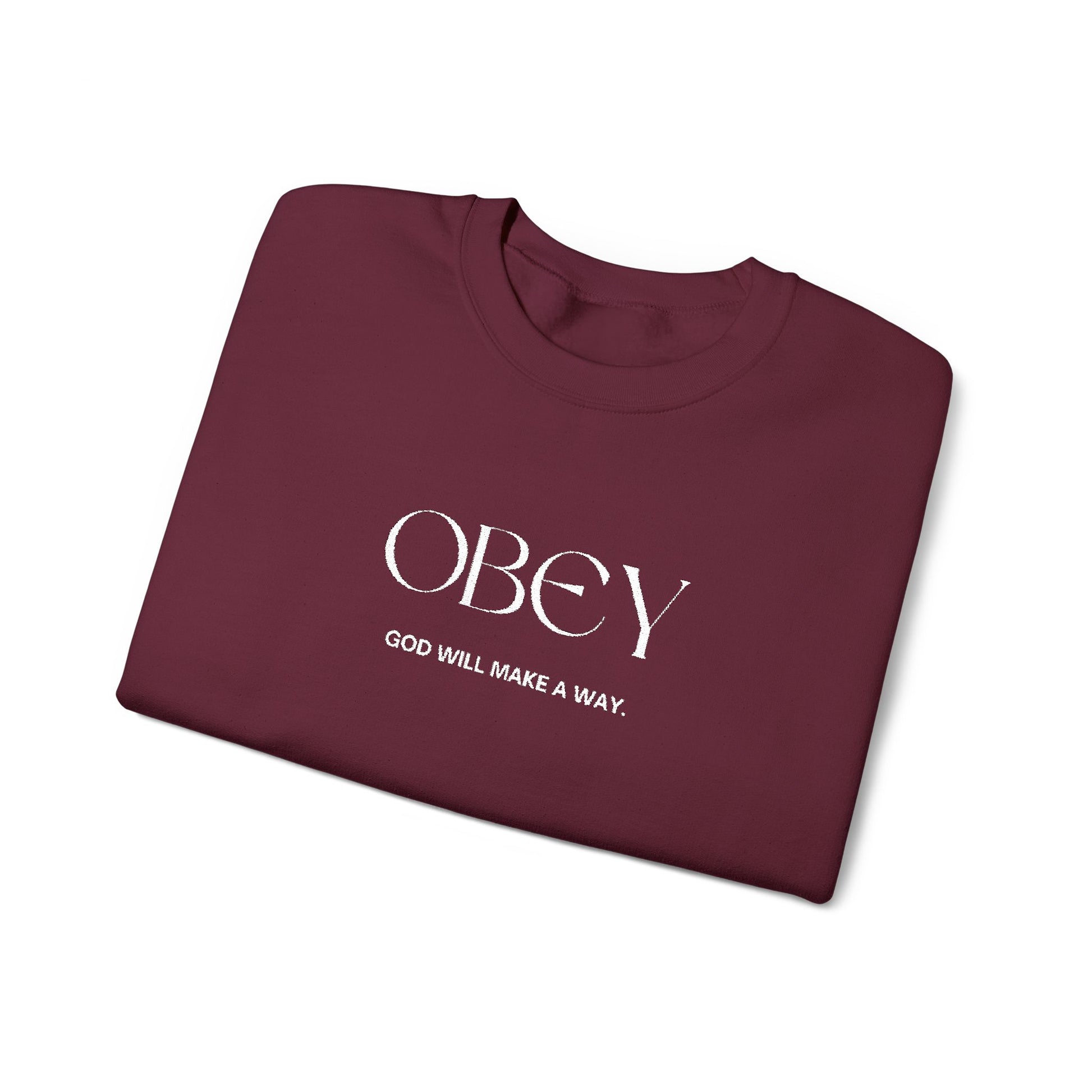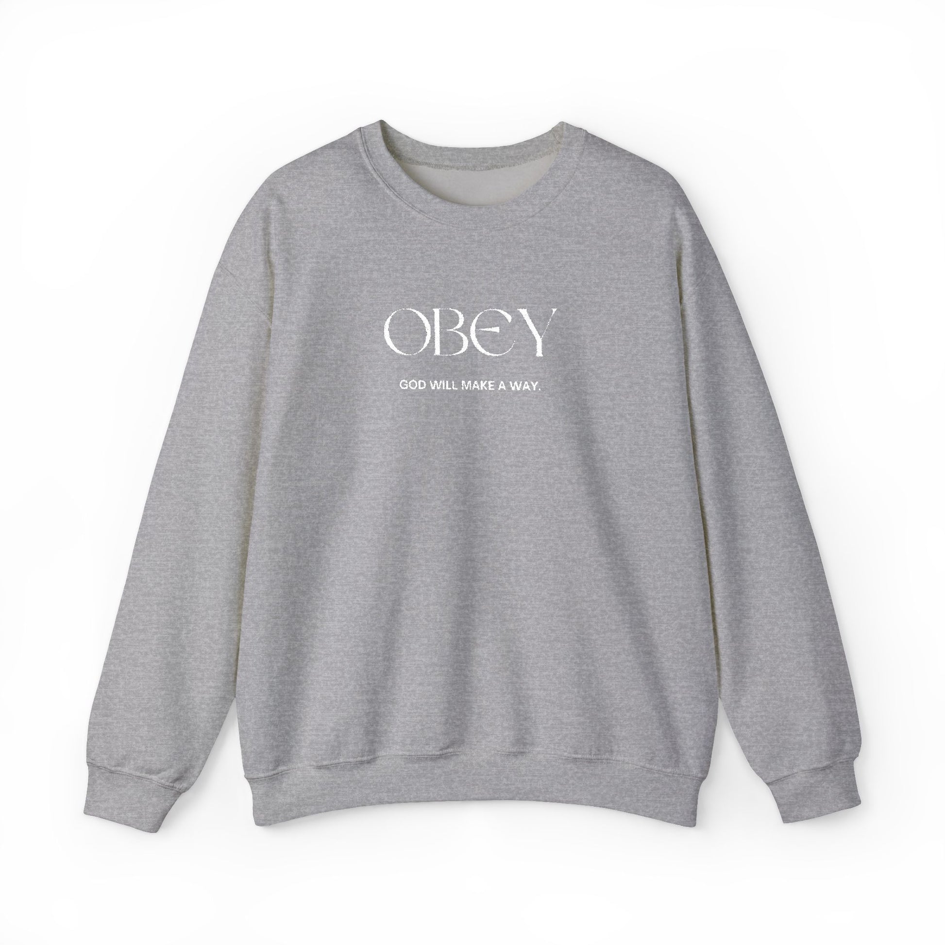 “Obey God Will Make a Way” Unisex Faith Quote Crewneck Sweatshirt — Vintage Graphic Sweater